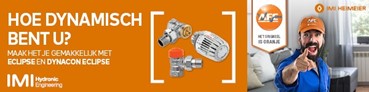 De Eclipse thermostatische afsluiters van IMI Heimeier zijn geschikt voor gebruik in tweepijp-verwarmingsinstallaties met normaal tot hoog temperatuurverschil. In renovatieprojecten hoeft het drukverlies in de leidingen in oude systemen niet bepaald te worden, alleen de verwarmingscapaciteit en het resulterende maximum debiet moet worden bepaald. Het minimum drukverschil moet over de meest ongunstige afsluiter gaan. Indien nodig, kan dit worden gemeten teneinde de instelling van de pomp te optimaliseren.