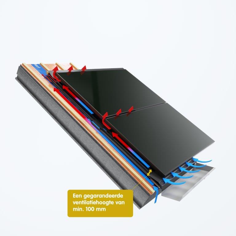 Het IsoBouw Solar daksysteem is het enige systeem waarmee conform de montage-eisen van de PV-paneelfabrikanten de minimale afstand van 100 mm tussen de PV-panelen en de onderconstructie wordt behaald. Hierdoor worden extreme temperaturen onder de panelen voorkomen en kan condensatievocht verdampen. Het gevolg: Een langere levensduur van het dak en een hogere opbrengst van de PV-panelen.