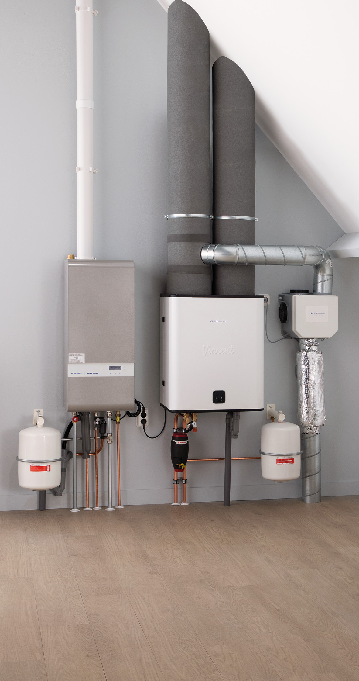 Doordat Vincent volledig binnen wordt opgesteld, is er geen ruimtebeslag in de tuin of op het balkon. Ook wordt het woningontwerp niet beïnvloed én is er geen sprake van buitengeluid. Plaatsing en onderhoud zijn zeer eenvoudig. “De warmtepomp verschilt in afmeting en aansluiting nauwelijks van een ketel en omdat Vincent sec uit een binnendeel bestaat, zijn er geen koeltechnische handelingen nodig. Installateurs hoeven hun werkzaamheden niet langer in weer, wind en/of op hoogte uit te voeren, waardoor installatie minder tijd kost. Omdat de warmtepompen worden gemaakt waar ze worden ingezet, is hun CO2-footprint zeer laag.” En ook de energierekening valt flink lager uit. “Vincent benut primair energie uit de buitenlucht en vult deze, indien beschikbaar, aan met energie uit de ventilatie-retourlucht. Doordat de ventilatie autonoom blijft functioneren, worden overventilatie en tochtklachten voorkomen. Ook wordt geen energie verspild aan onnodig extra ventileren. Door Vincent te koppelen aan de bestaande cv-ketel, wordt direct een forse gas- en CO2-besparing gerealiseerd.” Ook kennismaken met Vincent? Kijk dan op: www.ontmoetvincent.nl.