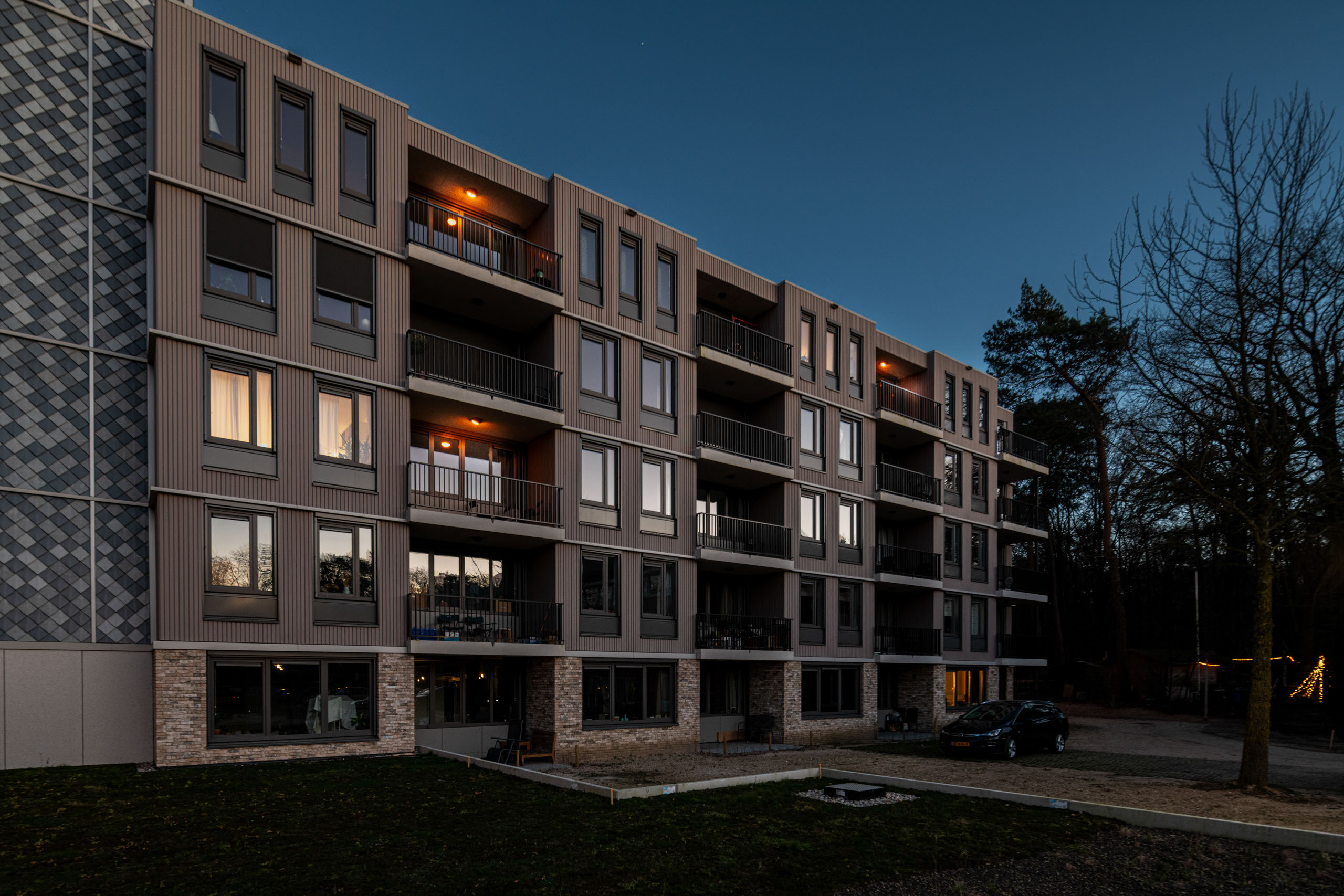 In Berg en Dal is het voormalige woonzorgcentrum Vijverhof duurzaam getransformeerd naar 72 appartementen. Eén van de uitdagingen voor installateur Ventimon was de buitenverlichting omdat de plek waar het pand staat, ook leefgebied is van veel vleermuizen. Lightronics kreeg de vraag het bestaande DOTT H-armatuur door te ontwikkelen en te voorzien van amberkleurige LED-verlichting. Eerder was al gekozen voor armaturen uit de DOTT-familie voor binnen-toepassingen – denk hierbij aan de gangen in het woongebouw. Omdat de DOTT H ook nog voorzien kan worden van een afscherming – zodat er gericht licht ontstaat, was dit een voor de hand liggende keuze. De bewoners kunnen de armaturen wel individueel aansturen. Tot slot is de vluchtweg voorzien van TPN LED-noodverlichtingsarmaturen, ook voorzien van de amberkleurige LED’s.Comfort Light