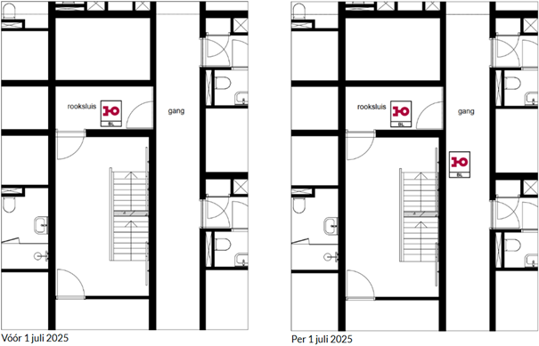 - Een aansluiting in de rooksluis of het trappenhuis; en