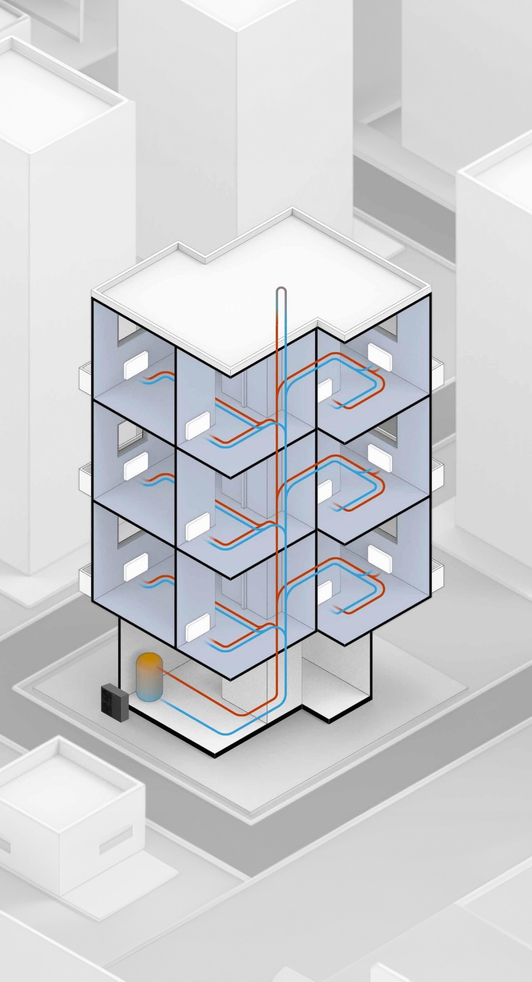 Dit maakt Aquarea Loop bij uitstek geschikt voor renovatieprojecten, waar individuele warmtepompen vaak leiden tot hoge kosten, beperkte ruimte en complexe aanpassingen aan het leidingwerk. Met één centrale warmtepompinstallatie en een gedeelde waterlus ontstaat een flexibel en efficiënt energiesysteem, zonder ingrijpende verbouwingen per woning.