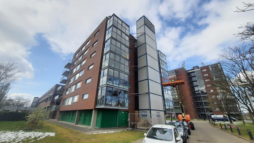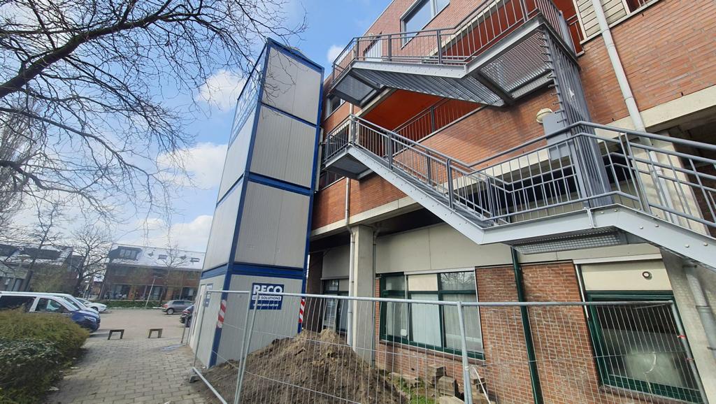 Het wooncomplex in Den Haag bestaat uit een hoog gedeelte van zes verdiepingen en een lager gedeelte van twee verdiepingen. Voor het hogere gedeelte heeft RECO Lift Solutions een tijdelijke personenlift geplaatst met een liftcapaciteit van 12 personen. Omdat er in het lagere gedeelte vooral zorgwoningen gevestigd zitten, is hier ook een lift geplaatst. Deze liften hebben een ruime cabine voor allerlei hulpmiddelen zoals rolstoelen, scootmobielen en indien nodig, een brancard. De liften zijn in twee werkdagen gemonteerd.