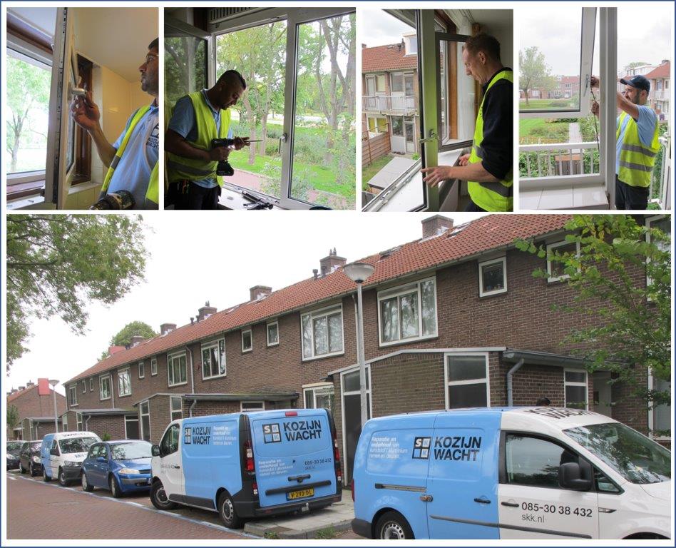 Een gemotiveerd team van SKK-monteurs werkt Corona-proof aan kozijnverbetering van 115 woningen in de Anton Struikstraat en omgeving te Amsterdam.