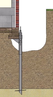 De fundering wordt gestabiliseerd door middel van het aanbrengen van buisvormige schroefpalen die aan de buitenkant van de woning worden aangebracht. Er is altijd een sondering nodig om te bepalen welke lengte palen nodig zijn. Zo is men er altijd van verzekerd dat de palen op de juiste diepte worden aangebracht. Op de aangebrachte paal wordt een bracket geplaatst welke onder de fundering wordt “geschoven” en de bestaande fundering als het ware opvangt.