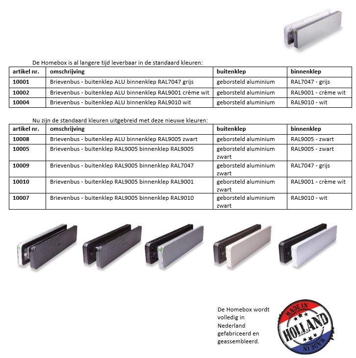 Nog meer keus om de Homebox in uw project toe te passen. Volg het voorbeeld. Bied hiermee de bewoner het comfort van een kierdichte en geïsoleerde brievenbus en toch de post op de deurmat.