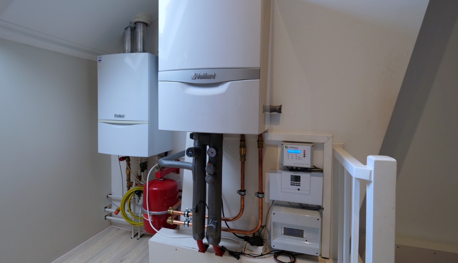 Het Volthera concept is zo ontwikkeld dat het zowel voor een hybride als all-electric oplossing toepasbaar is. In de woning is gekozen voor een hybridesysteem. Van Doormalen legt uit: “In dit hybridesysteem werkt de warmtepomp samen met de ketel. De warmte die je met de PVT-panelen opwekt, volstaat om voor 90 procent van het jaar alleen met die bron warmte te genereren. De ketel dient voornamelijk als warmwatervoorziening. Bij dit systeem bespaar je veel gas doordat je zelf de elektriciteit voor de warmtepomp opwekt.” Michielsen vult aan: “Het systeem is flexibel. Wanneer we voor een all-electric toepassing gaan, vergroten we het aantal panelen van 8 naar minimaal 12 panelen voor 3kW all-electric. Ook werken we met een groter buffervat van 300 liter in plaats van 200 liter.”