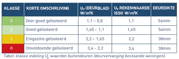 Door een bestaande deur met een dikte van 38 mm te vervangen door een deur met een dikte van 54 mm stijgt de isolatie van de gevel en neemt de tocht sterk af. Een klein verschil met groot resultaat: het zorgt voor een prettig en comfortabel huis, een lagere energierekening én CO2-reductie.Isolatie & streefwaarden
